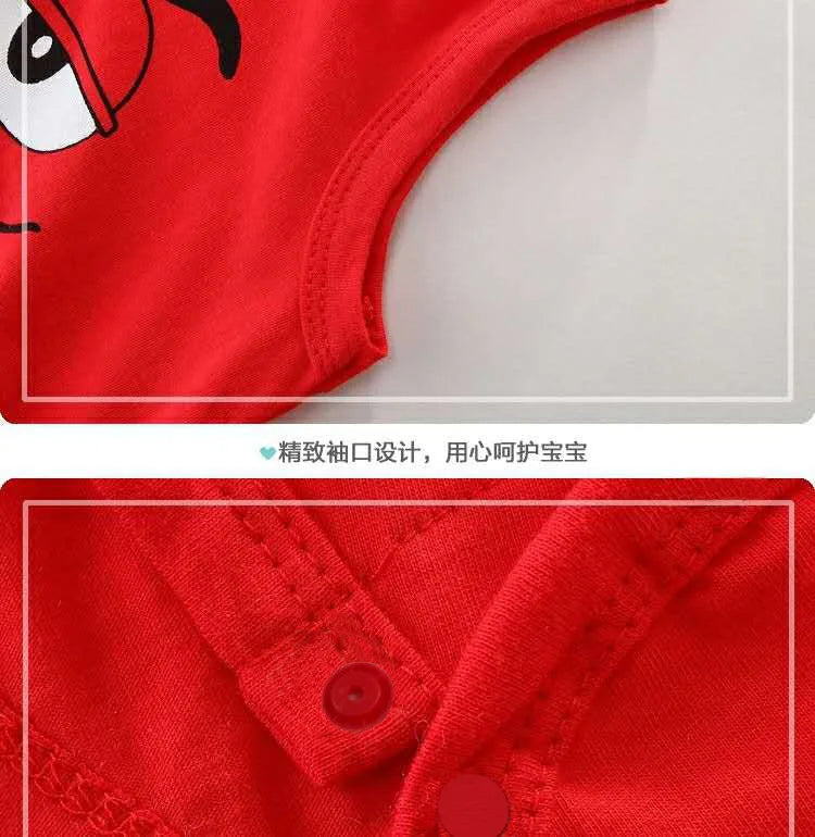 The romper comes in various sizes to fit newborns up to 24 months, with snap-button closures at the bottom for easy diaper changes. The sleeveless design allows for easy layering, making it a versatile addition to your baby’s wardrobe. With its durable stitching and vibrant print, this romper is not just cute but also practical, perfect for everyday wear, playdates, or special occasions.