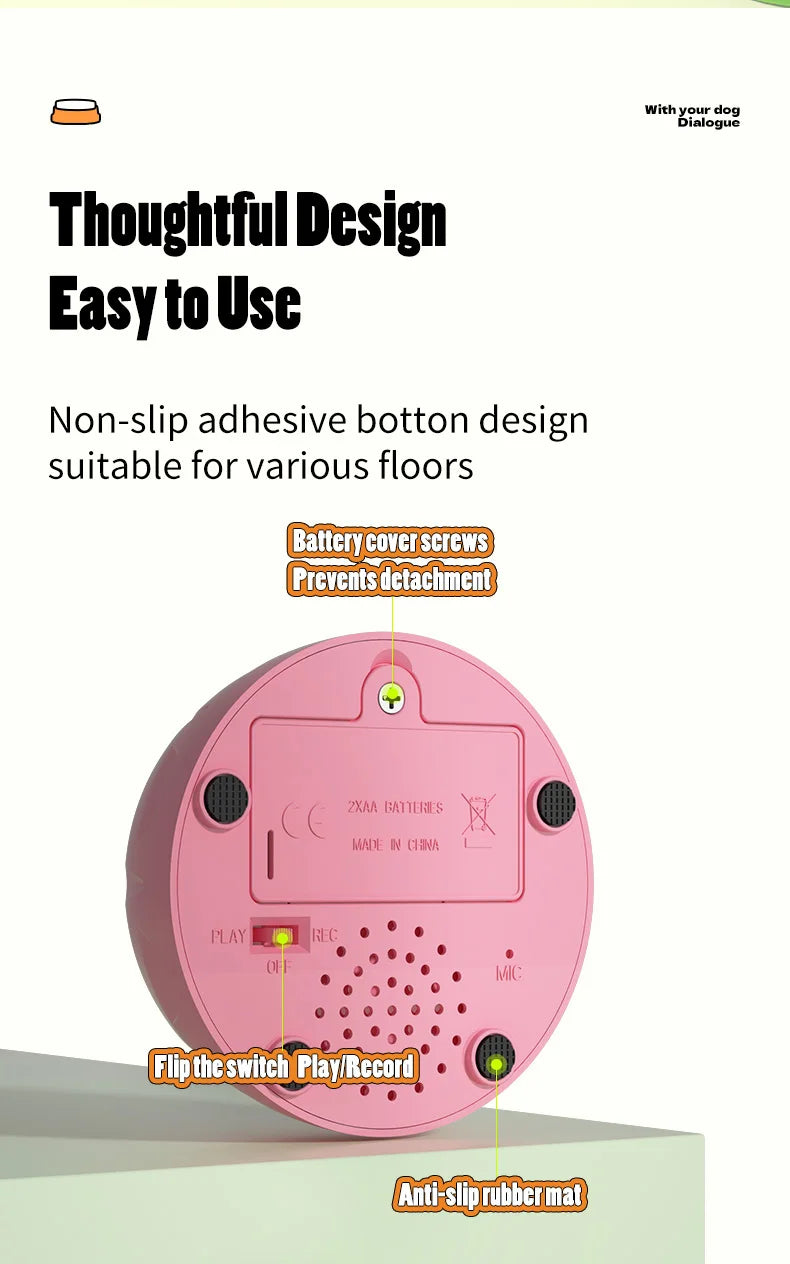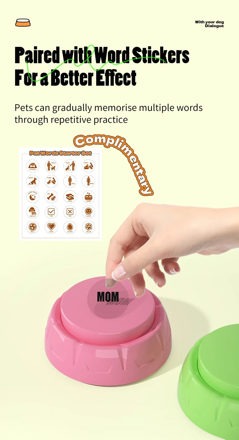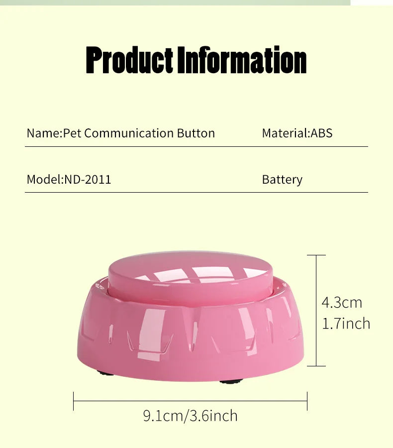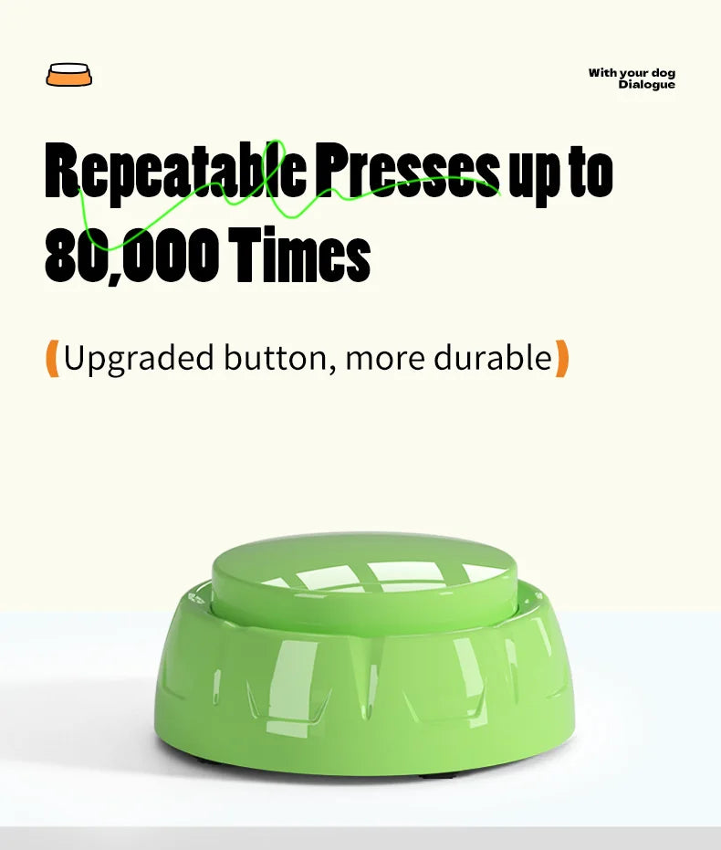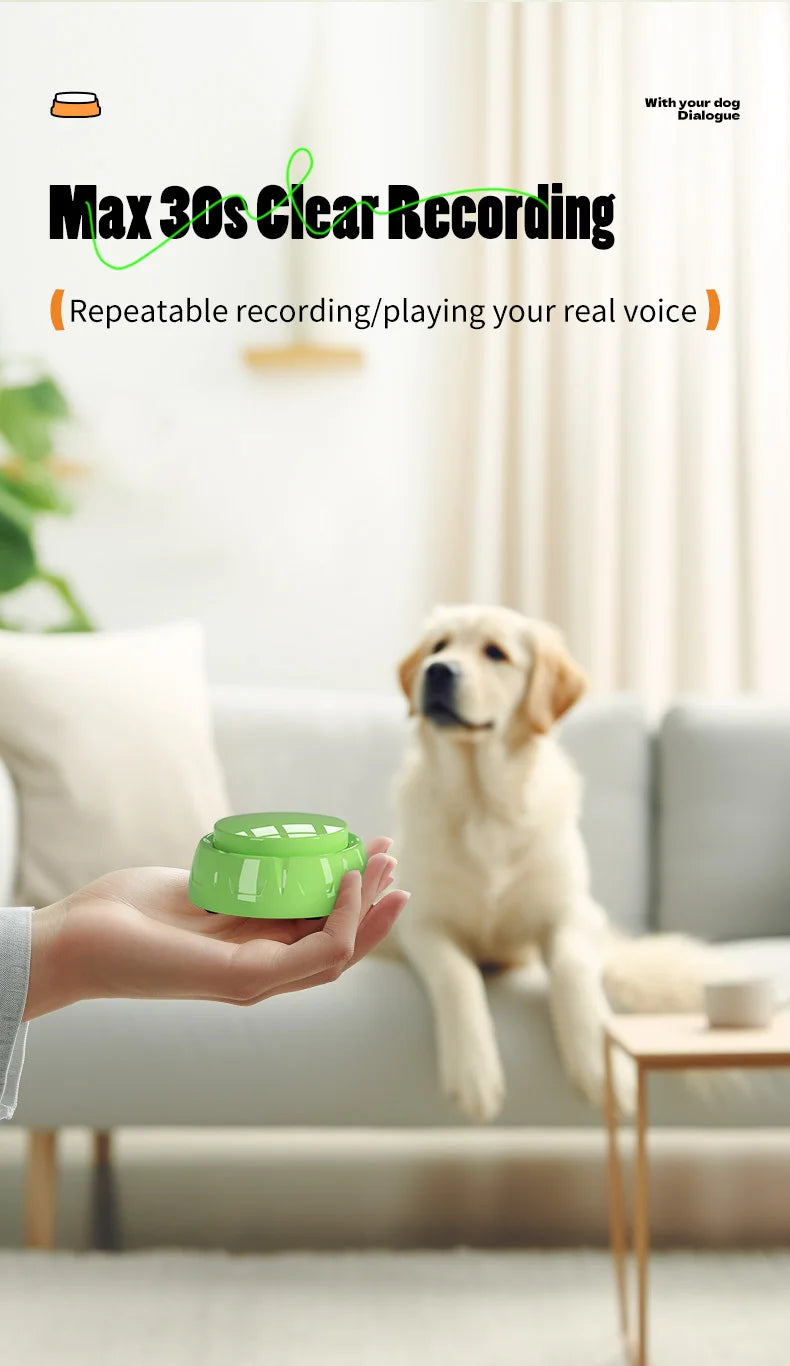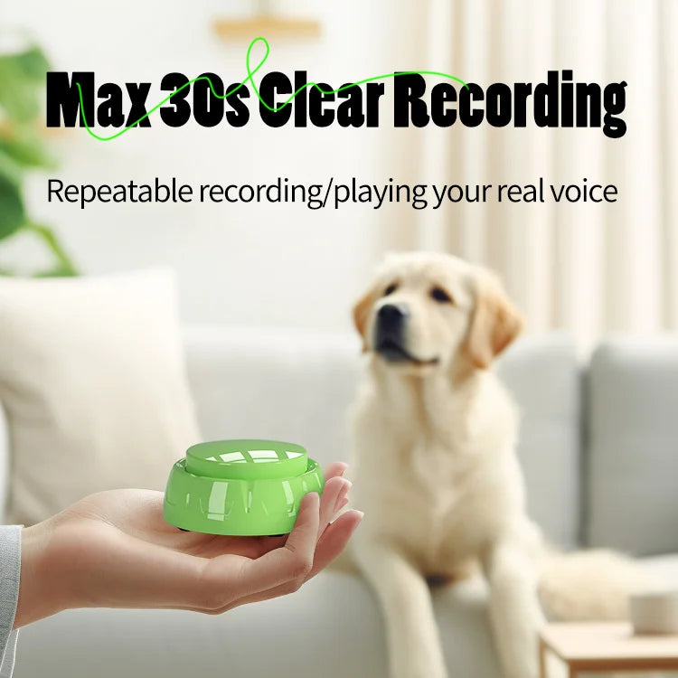 1.Recordable & Customizable: Easily record up to 20 seconds of sound per button, creating personalized messages for your dog.